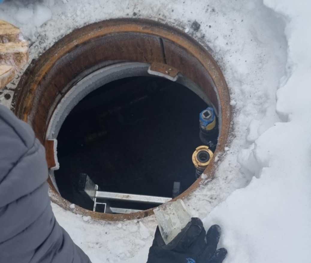 - Plasser slangevogna ved siden av kumen og koble på. Her er det viktig å være nøye for å unngå lekkasje. Gå gjerne halvveis ned i kummen for bedre sikt.